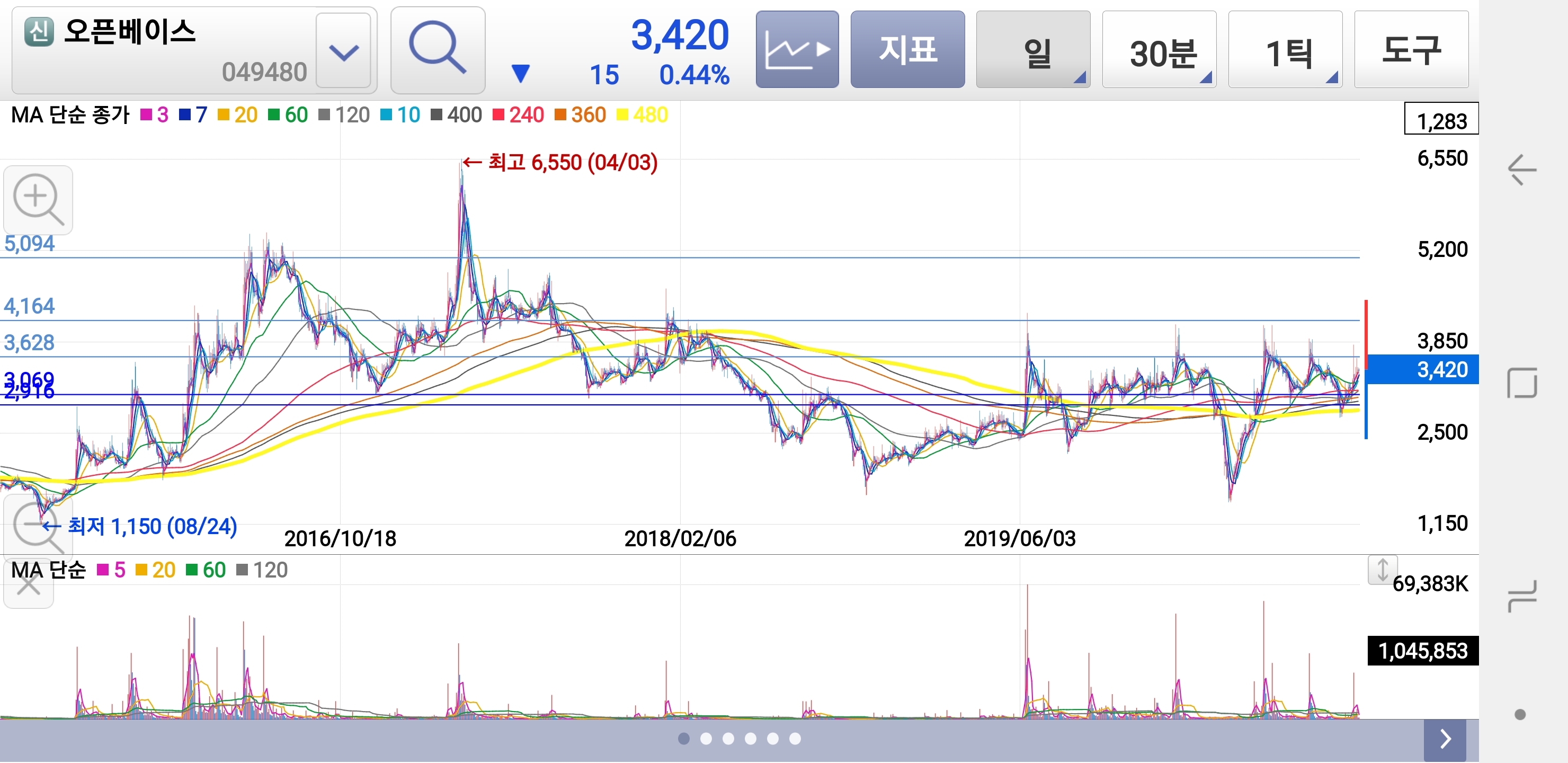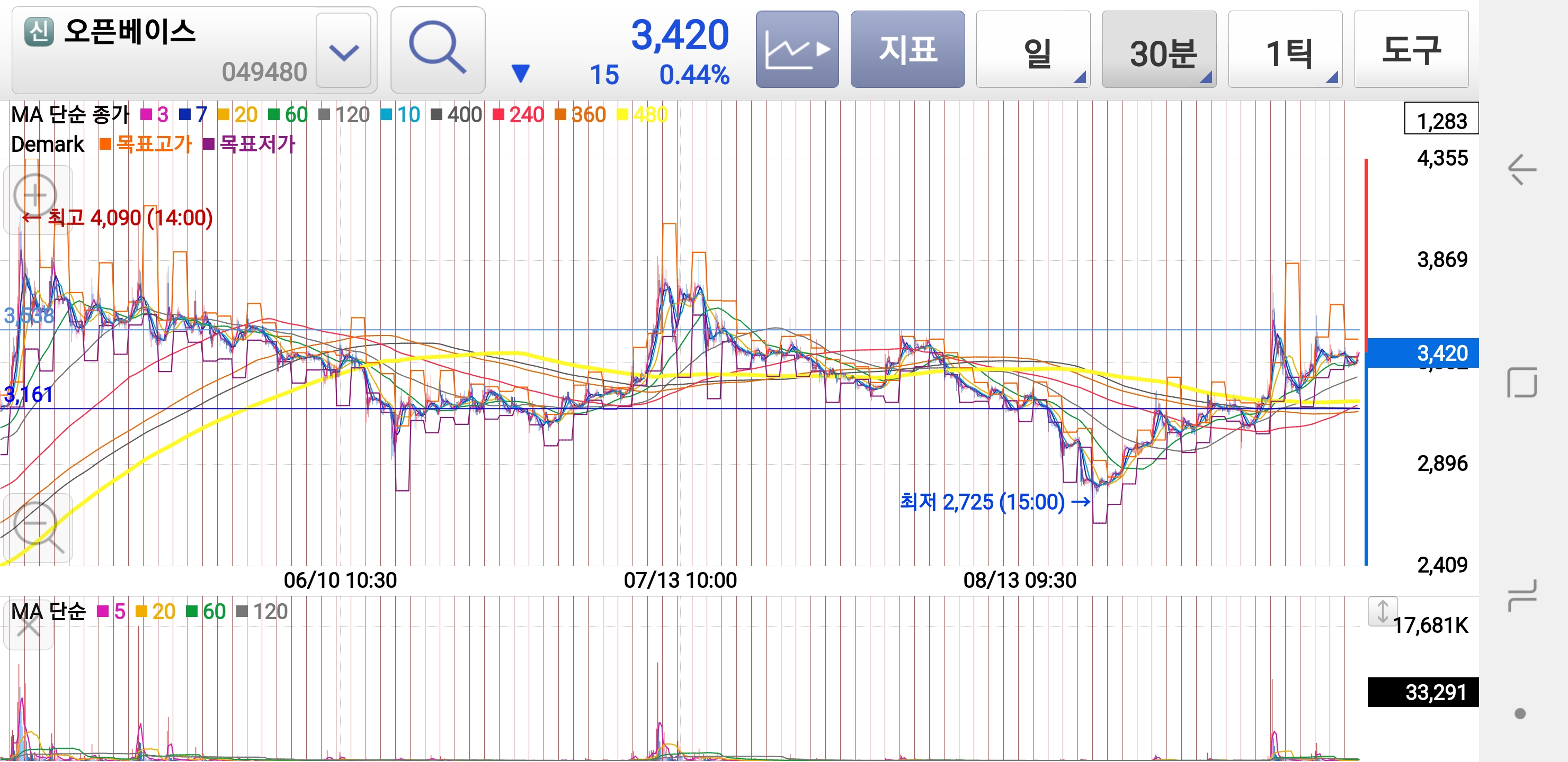 분봉으로는 3600원을 아직 먹은게 아니구요