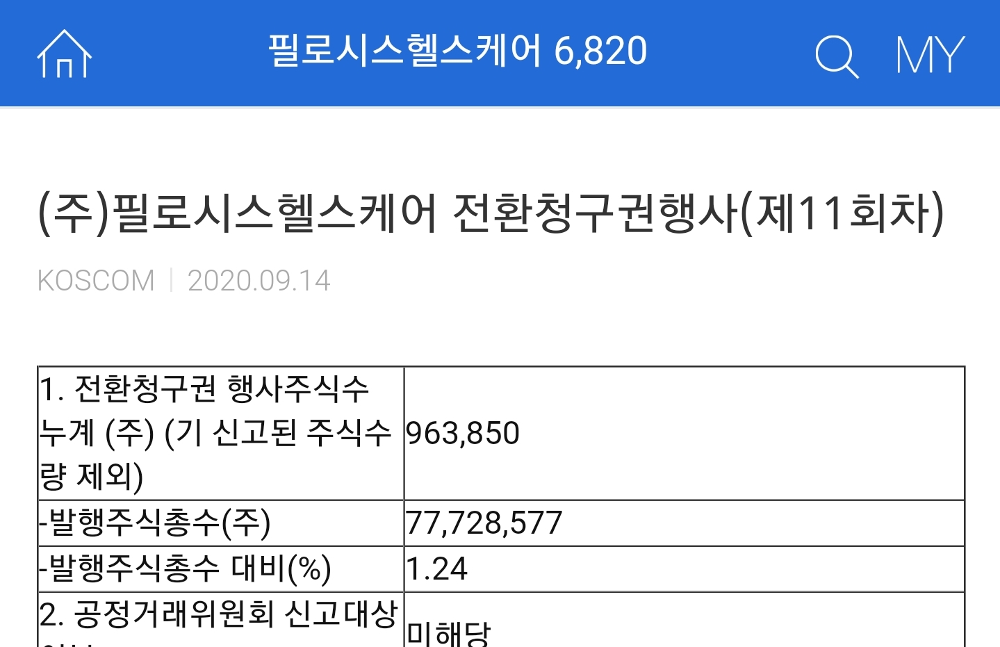 일단 앞서 말씀드렸듯이 1270만주 전환사채