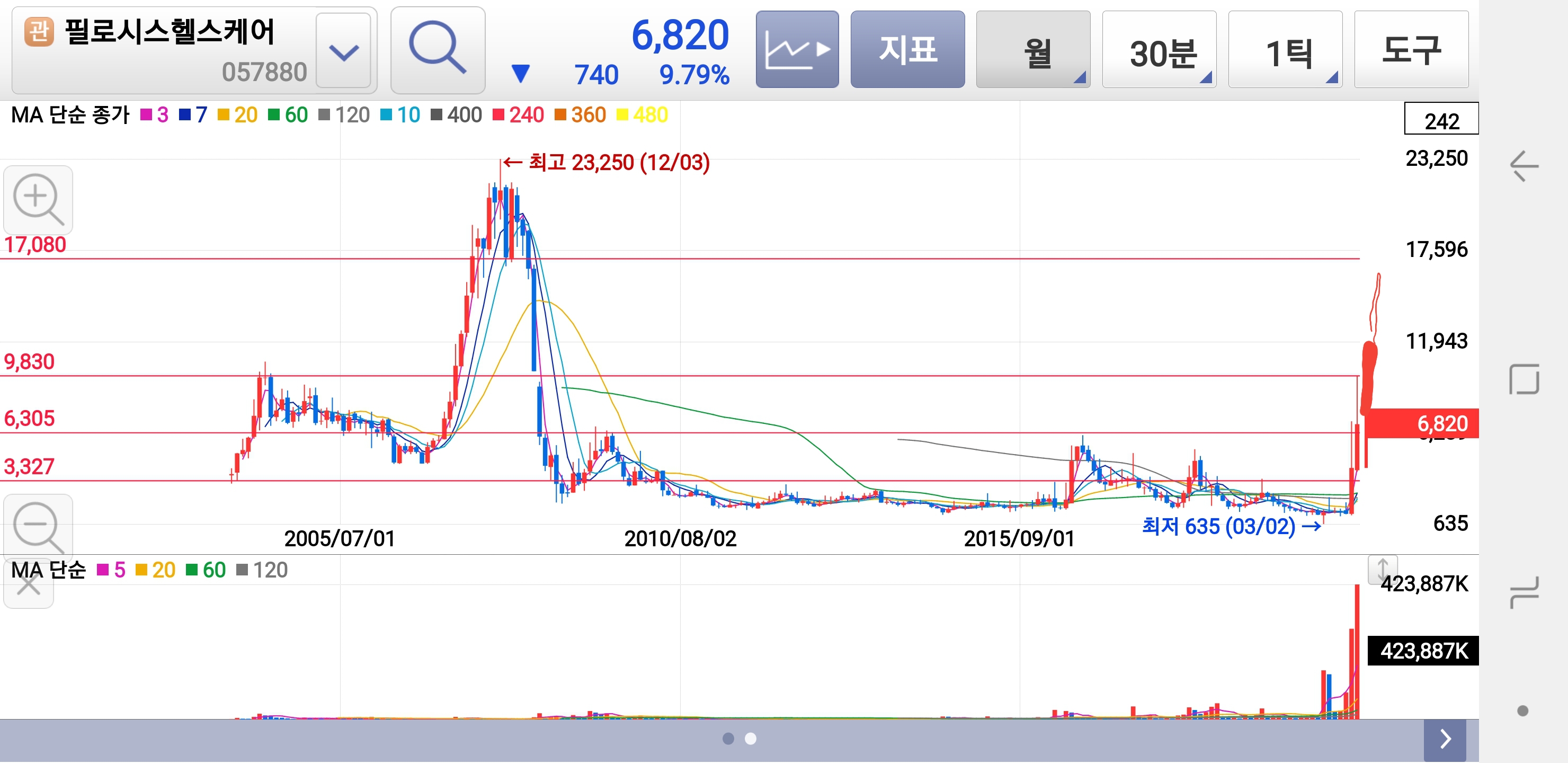 일봉을 늘려서 보시기 바랍니다