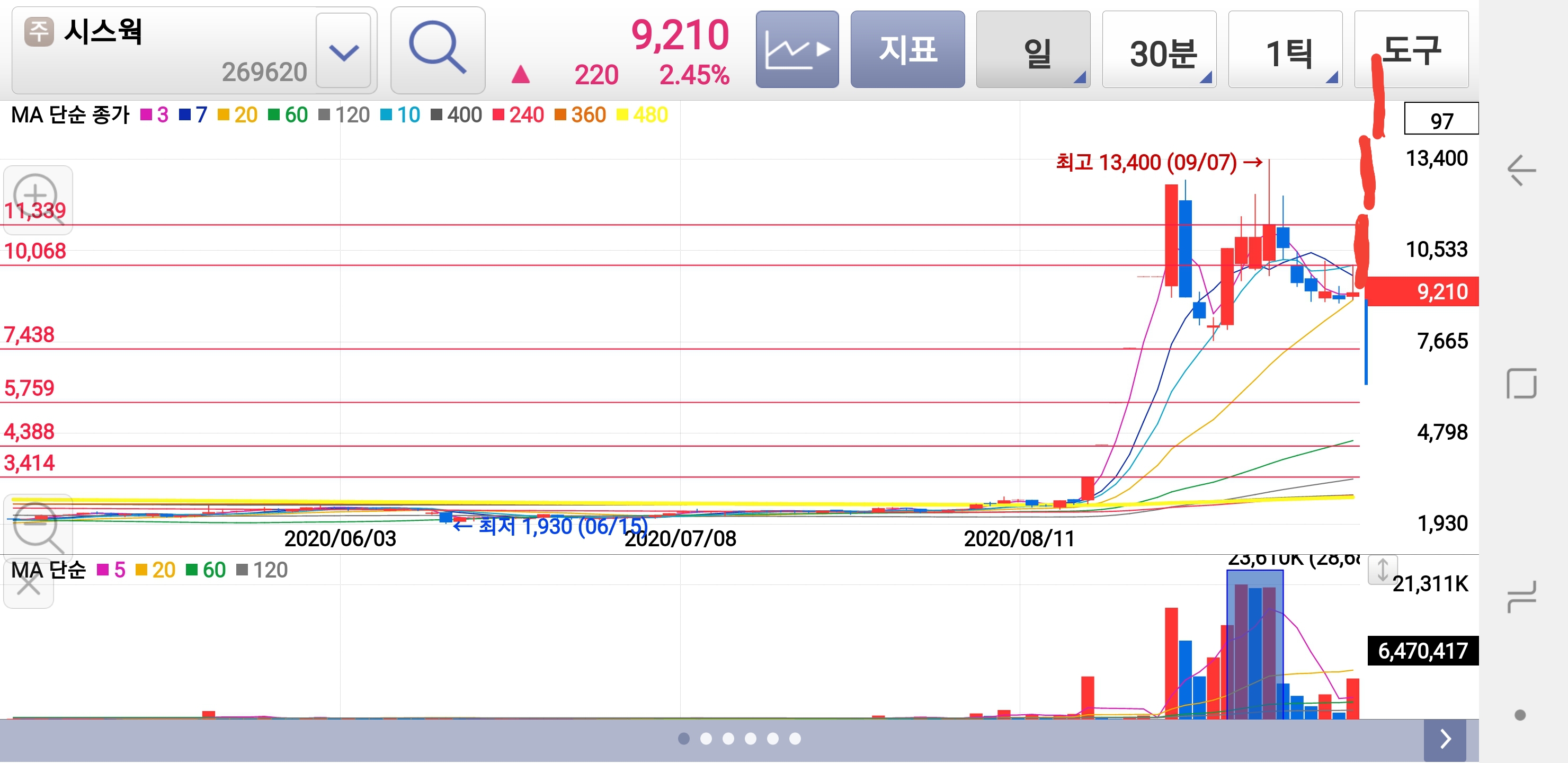 저 6천만주 거래량을 소화하려면